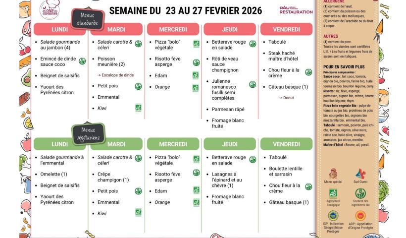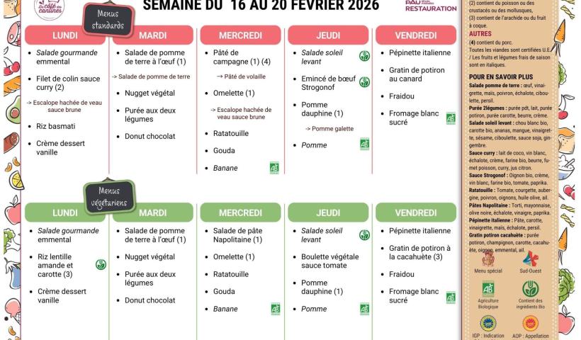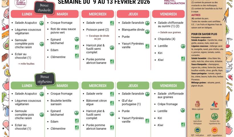 Cantines : les menus de la semaine et du mois