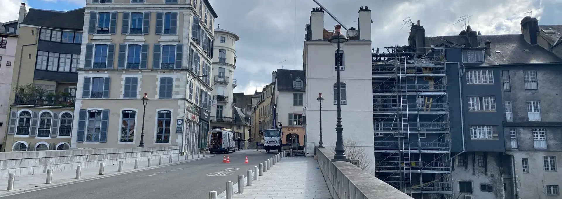 L’entreprise qui devait démolir la partie instable de la toiture de l’immeuble sinistré a pu intervenir rapidement et la rue Bordenave d’Abère rouvre à la circulation automobile et piétonne dès mardi 10 mars à 19h.