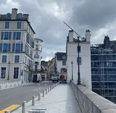 La rue du château reste partiellement fermée : interdiction d’accès aux piétons et automobiles au droit des trois immeubles sinistrés (11 et 13 rue du Château et 1 rue Bordenave d’Abère).