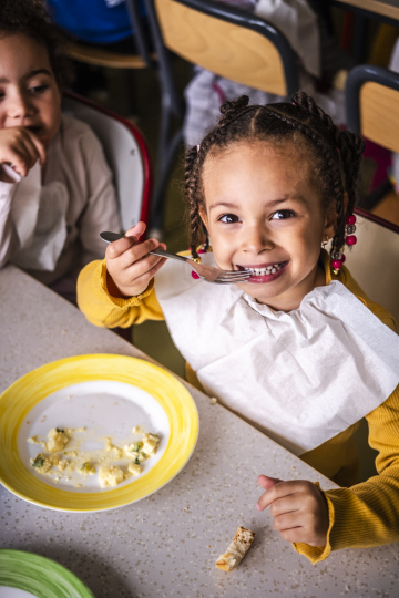 Enfin, des animations sensorielles sont suggérées pendant les repas pour inviter les enfants à être attentifs à leurs ressentis. Observer, sentir, goûter, verbaliser : ces moments d’éducation sensorielle favorisent le plaisir de manger et encouragent des choix alimentaires éclairés pour les adultes en devenir.