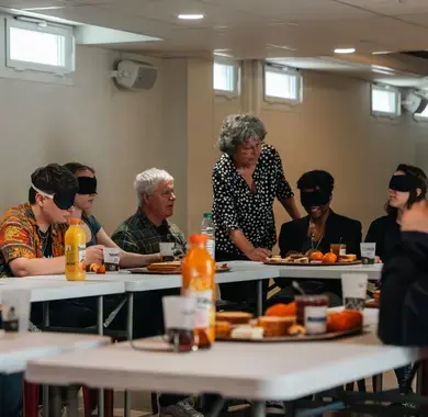 Animations autour de la déficience visuelle et goûter les yeux bandés.