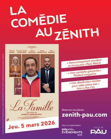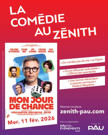 - En vente uniquement à la billetterie du Zénith de Pau, du lundi au vendredi de 9h à 12h et de 14h à 17h, au guichet ou par téléphone au 05 59 80 77 50.