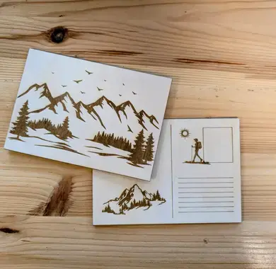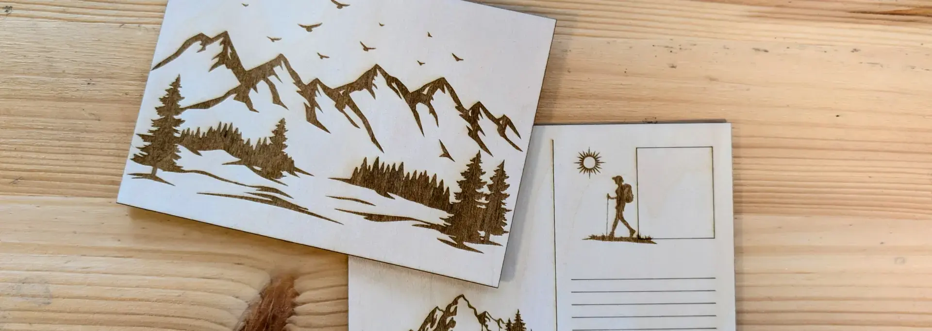 Conçois ta carte postale en bois et personnalise-la grâce à la gravure laser.