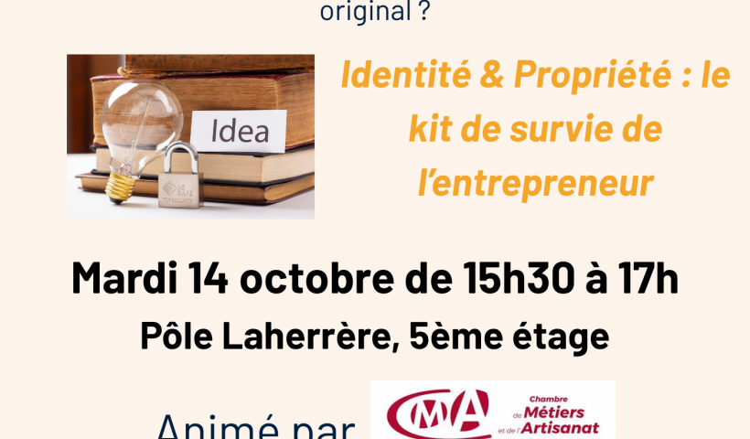 Dans le cadre du Carrefour de l'Entrepreneuriat, nous vous proposons un atelier sur la protection intellectuelle d'une entreprise : comment protéger son nom, son idée, sa marque, sa création quand on est entrepreneur, créateur ?