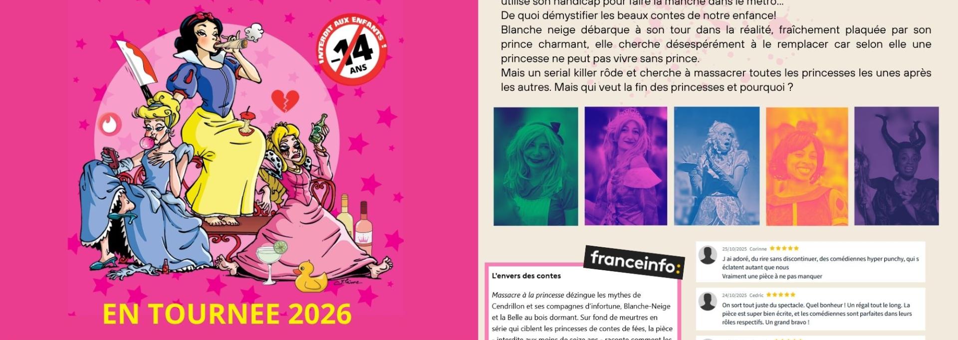 Dans ce spectacle, totalement rock’n’roll et déjanté, les princesses se sont faites virer de leurs contes et essayent de survivre tant bien que mal dans la dure réalité de la vie.