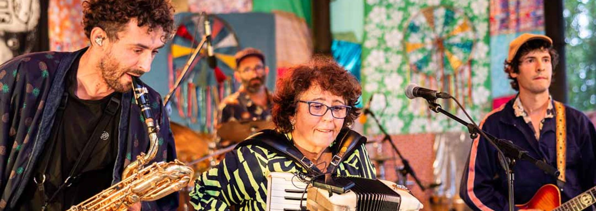 Rita Rita, c'est depuis une dizaine d’années, Rita Macedo, Jaime Chao, Brice Matha et Louis Lubat qui partagent la route au sein du Grand Bal du parti Collectif. Ils décident de se confronter au répertoire et à la culture bahianaise de Rita pour la décaler un peu, l’emmener sur des chemins de traverses. Un instrumentarium original avec deux voix, un accordéon, un saxophone trafiqué et deux batteries ! Du forró nordestain à la transe, une rencontre entre la puissance des traditions que Rita et la folie improvisatrice uzestoise.