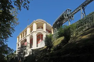 L'esplanade du funiculaire, dans le prolongement de la place Royale, correspond au toit-terrasse du Pavillon des Arts. Ce dernier cultive le paradoxe d'être aussi monumental vu d'en bas, que discret vu d'en haut. Construit en 1831 à flanc de coteau, son propriétaire, M. Barrau en fait une «maison des bains». Ce bâtiment comprend alors le logement de fonction de l’exploitant, des cabines de bains et deux appartements de dix pièces chacun proposés à la location.