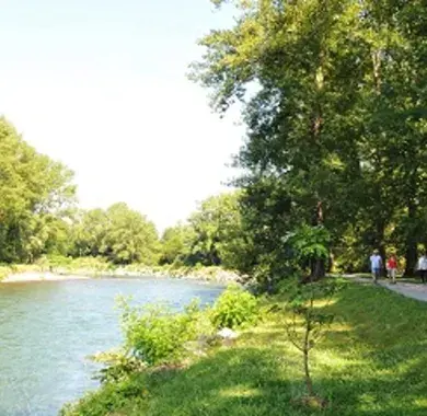 Continuez tout droit pour passer sous le pont d’Espagne et arrivez à la Base d’Eaux Vives puis empruntez le parcours sportif pendant 1,5 km qui longe le gave.