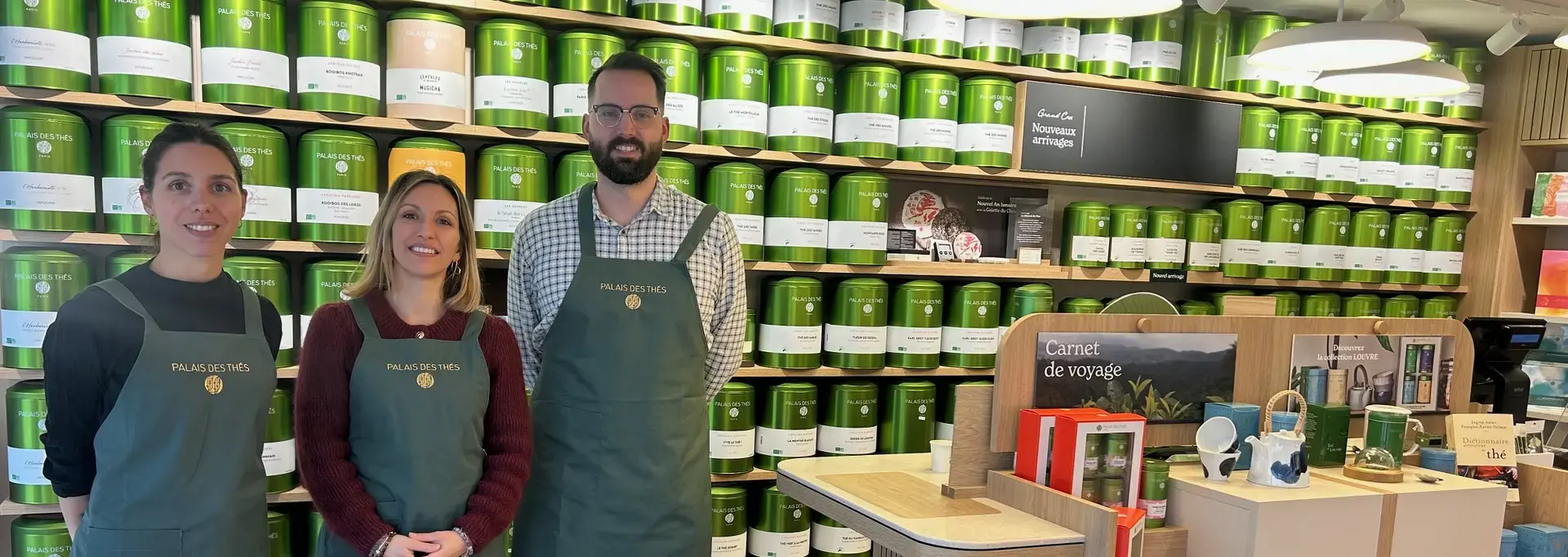 Poussez la porte du Palais des Thés et laissez-vous surprendre par les parfums et les couleurs de chaque thé. Que vous soyez connaisseur ou simplement curieux, Alexandra, Fantine et Julien vous accueillent avec le sourire pour partager leur passion et vous guider dans vos découvertes. Car comme le dit la philosophie du Palais des Thés : « Se préparer un thé, c’est déjà se préparer à prendre soin de soi. »