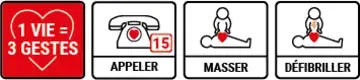 Face à une personne qui est en arrêt cardiaque, La Fédération Française de Cardiologie insiste sur les 3 gestes pour sauver une vie :