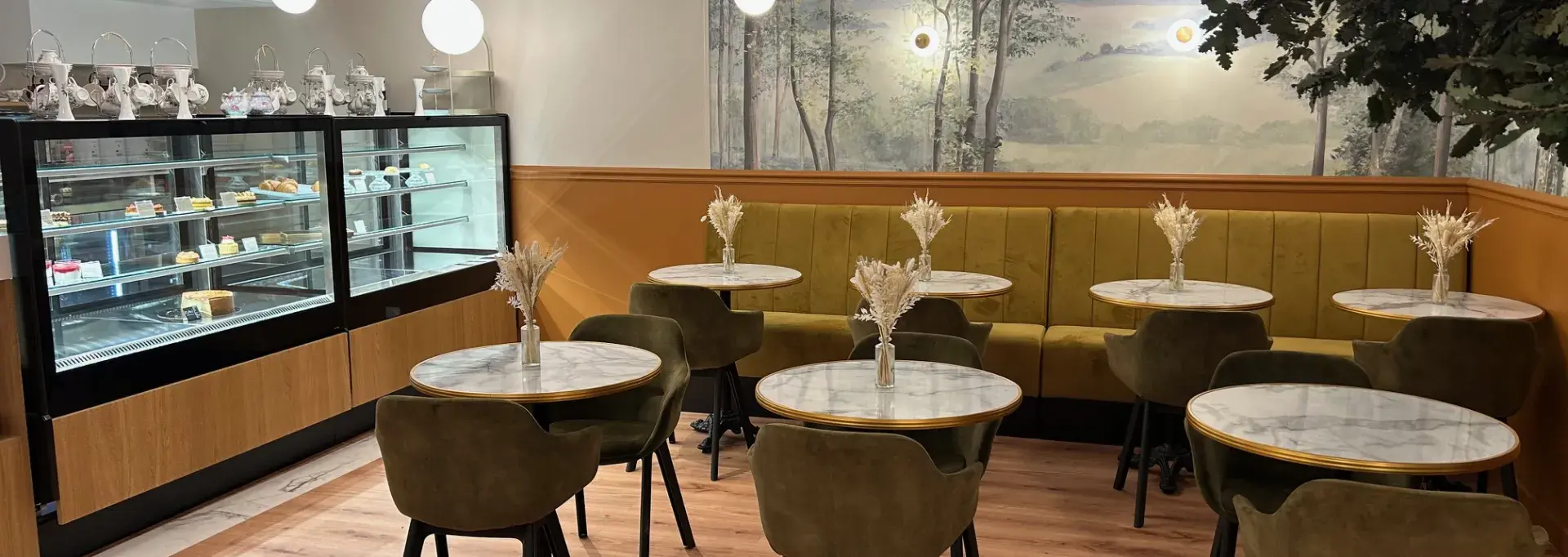 Le salon de thé, à l’esprit anglais, invite à ralentir. On s’y installe autour de pâtisseries artisanales, de thés d’exception, d’infusions parfumées et de boissons gourmandes.