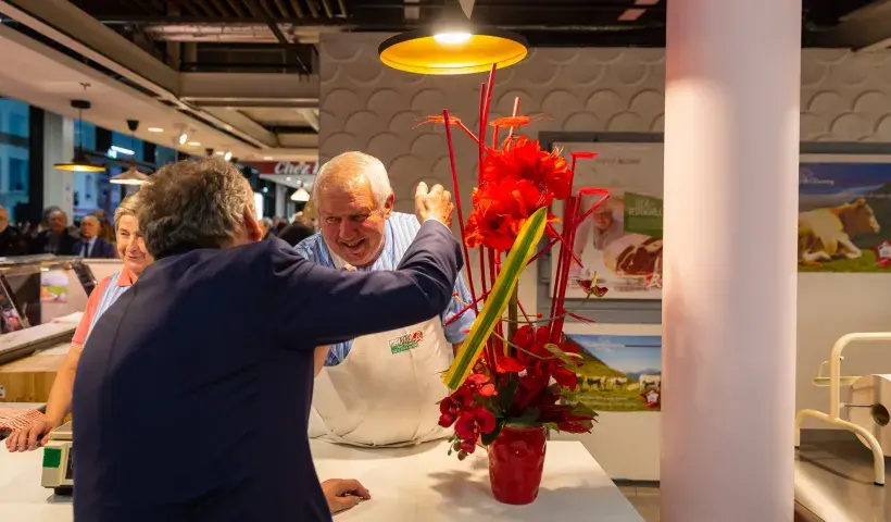 Juste avant, le Maire de Pau a souligné le succès populaire connu par les Halles, fréquentées depuis leur ouverture le 11 septembre 2018 par 80% de personnes supplémentaires : « Ces Halles, c’est le cœur battant, l’âme du centre-ville ». Il en a profité pour remercier « les étaliers qui nous ont fait confiance, les entreprises qui ont tenu les délais et respecté les devis. » Il a aussi demandé aux nombreux public d’applaudir son premier adjoint, Jean-Paul Brin, « celui qui a eu la bonne idée de créer la mezzanine » sur laquelle les étaliers proposent de la restauration et des espaces dégustation.