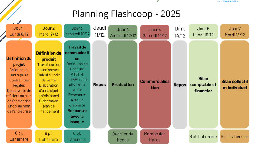 La Flashcoop© permet de s’immerger dans la vie d’un entrepreneur en conditions réelles : en l’espace de quelques jours, les participants vivent en accéléré la création d’une entreprise, dans le but de « s’essayer à l’entrepreneuriat ».