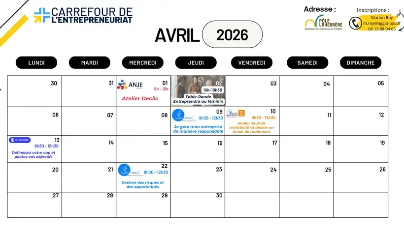 Chacun des partenaires du réseau du Carrefour de l'Entrepreneuriat organise des évènements, ateliers, réunions d'information et portes ouvertes tout au long de l'année.