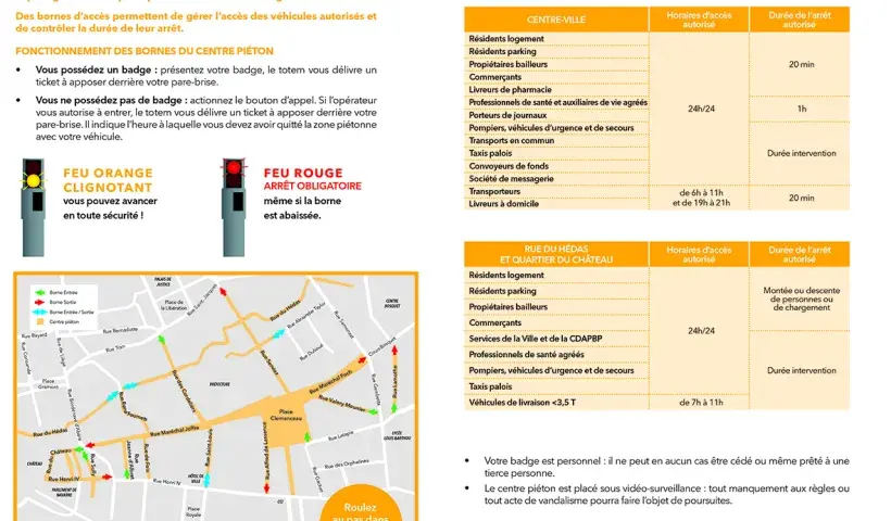 La Ville de Pau a mis en œuvre un centre piéton pour permettre aux piétons et aux cyclistes d’évoluer dans les meilleures conditions, et d’harmoniser le partage de la voie publique entre les différents usagers. Des bornes d’accès permettent de gérer l’accès des véhicules autorisés et de contrôler la durée de leur arrêt.